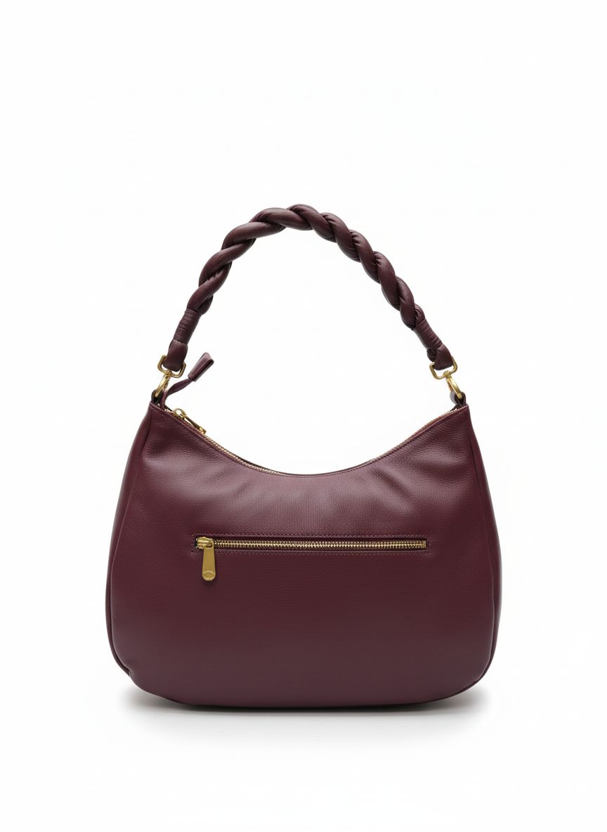 Τσάντα ώμου από δέρμα νάπα με ματ χρυσά μεταλλικά στοιχεία στριφτό δερμάτινο χερούλι εξτρα ρυθμιζόμενο λουράκι ώμου κλείσιμο με φερμουάρ εξωτερική πίσω τσέπη και υφασμάτινη επένδυση εσωτερικά.
