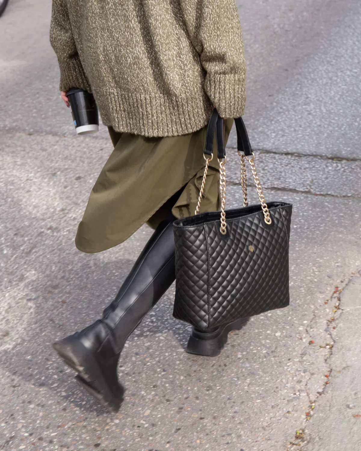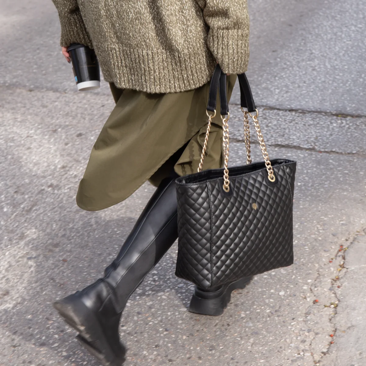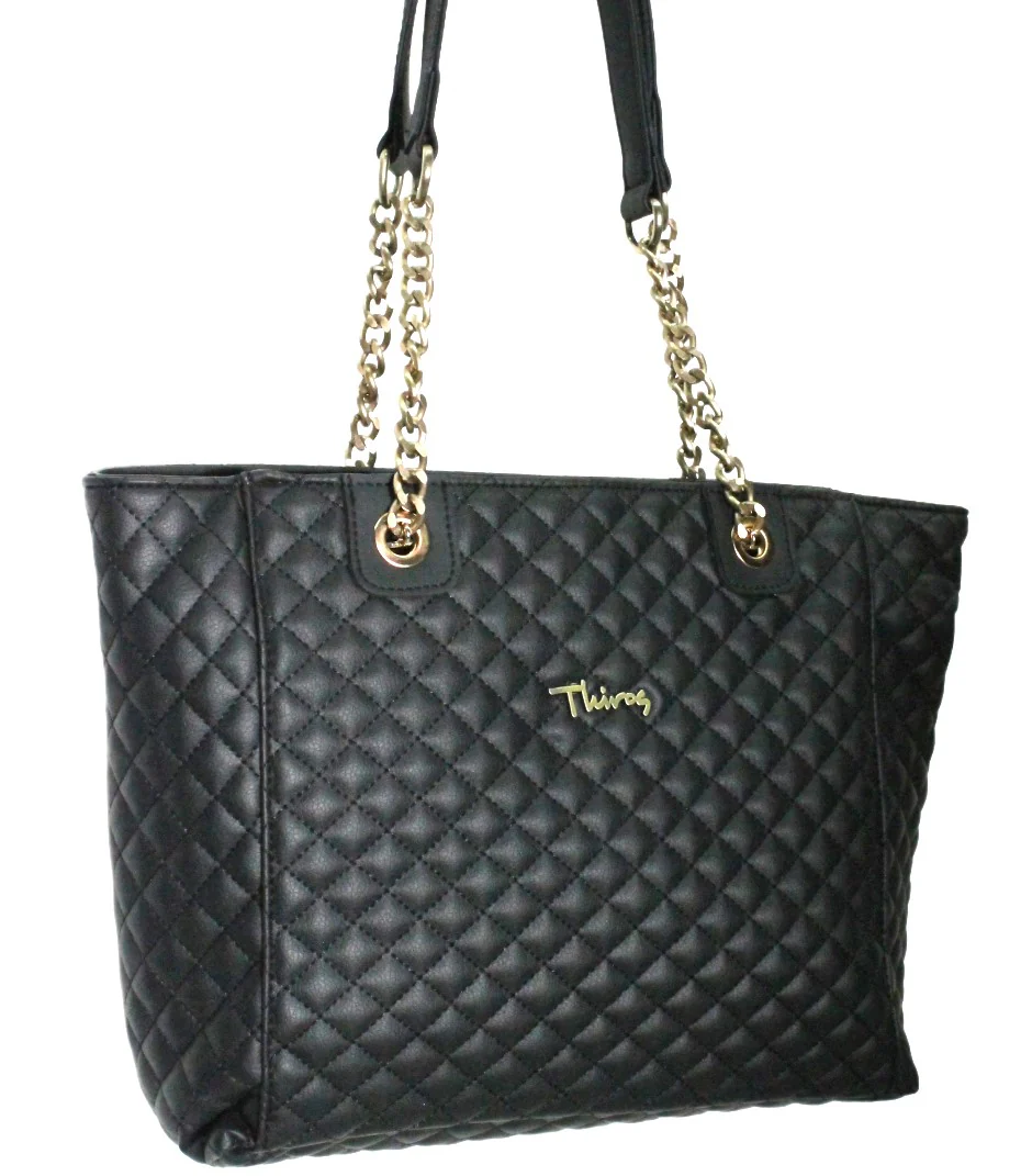 Γυναικεία Τσάντα Tote Καπιτονέ,Thiros Glam μαύρη