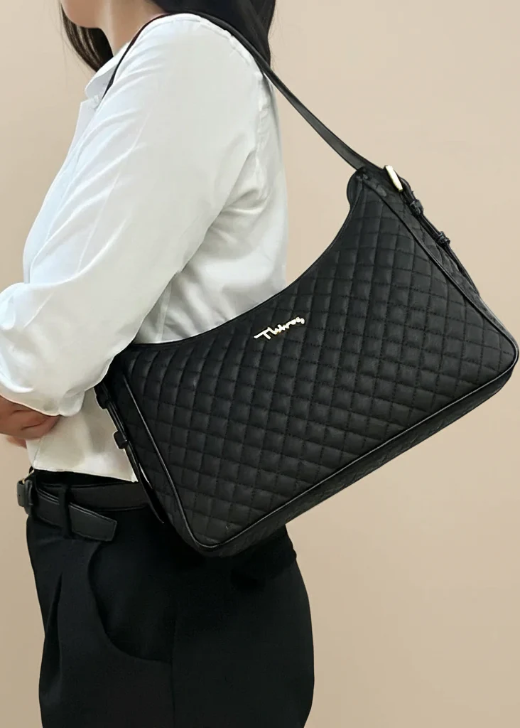 Γυναικεία Τσάντα Ώμου Καπιτονέ,Thiros Glam μαύρη