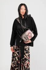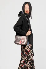 Charm μεταλλικό διακοσμεί την τσάντα. Ανάγλυφα στοιχεία όπως κεντήματα, μεταλλικά, δημιουργούν ένα ιδιαίτερο patern .