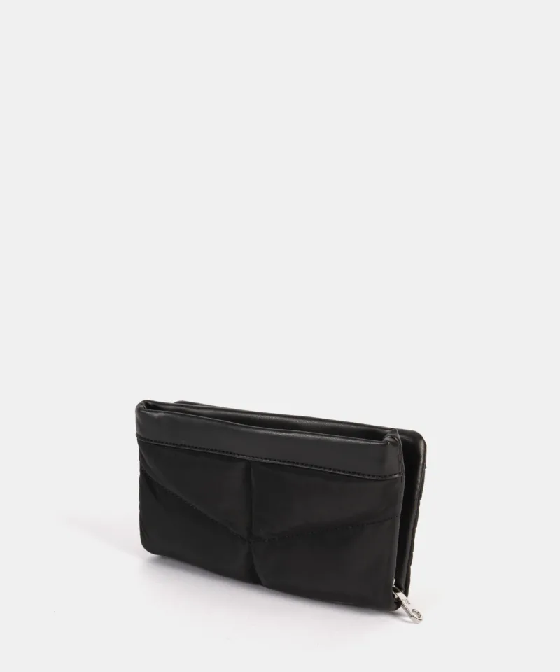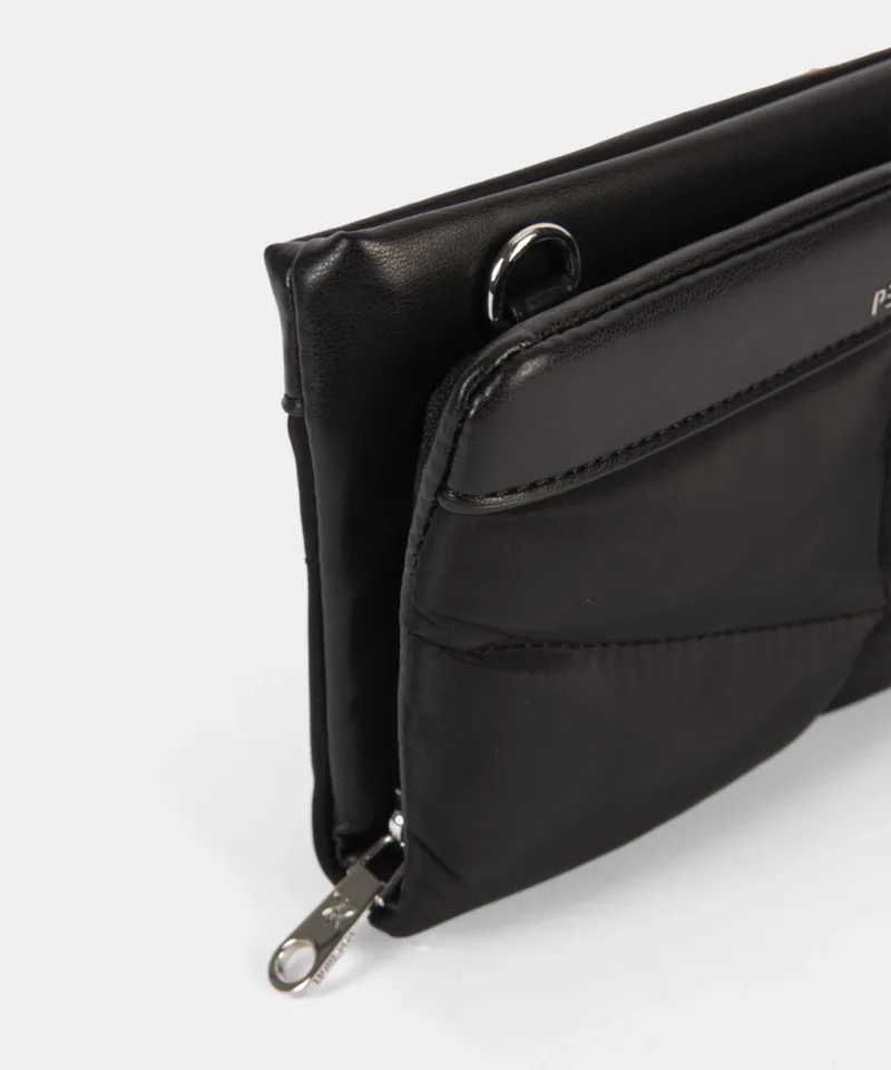 Η επίπεδη, πολυτελής της αισθητική πλαισιώνεται από ένα λεπτό, ρυθμιζόμενο και αποσπώμενο λουράκι, που σας επιτρέπει να τη φορέσετε χιαστί ή να τη μετατρέψετε εύκολα σε ένα κομψό clutch. Το εσωτερικό της κρύβει περισσότερα από όσα δείχνει: οργανωμένη κύρια θήκη με φερμουάρ, υποδοχές για κάρτες, τσέπη με φερμουάρ και κεντρικό διαχωριστικό — όλα σχεδιασμένα για να έχετε τα απαραίτητα πάντα σε τάξη.