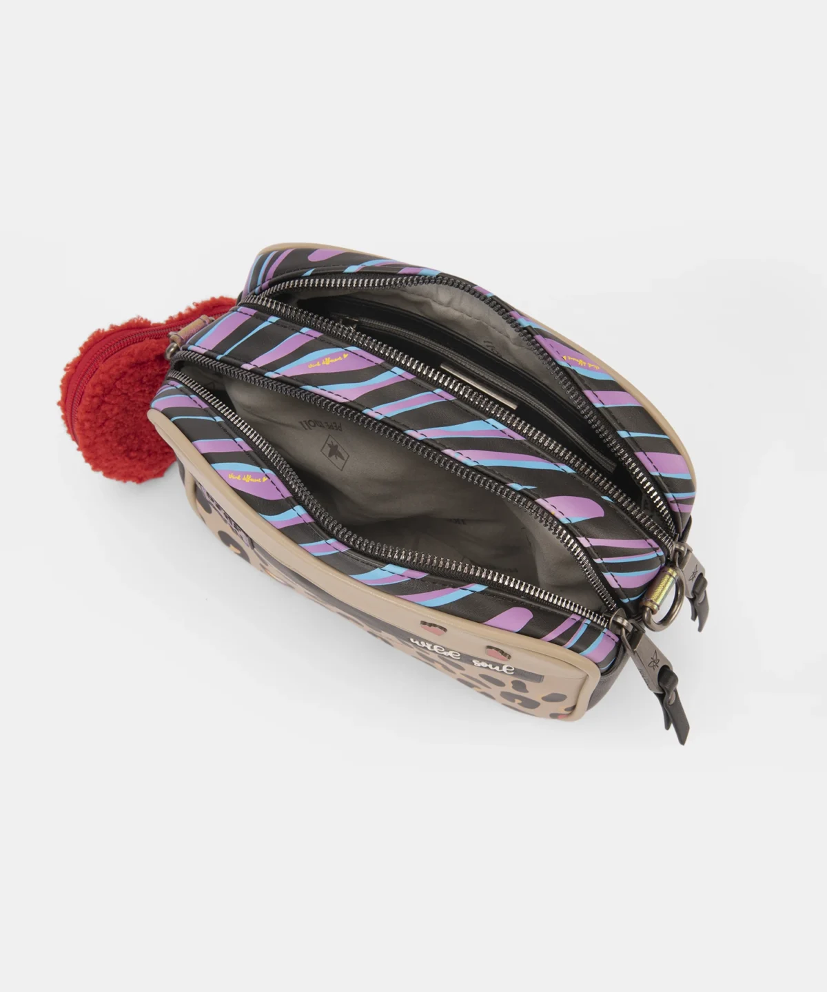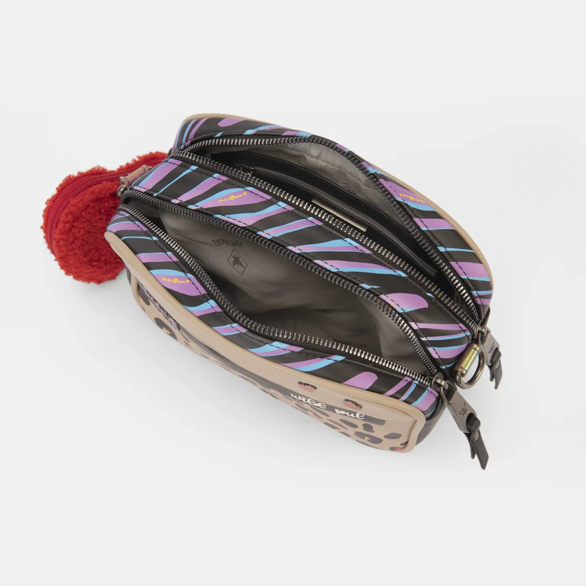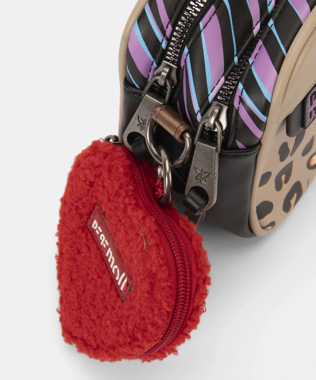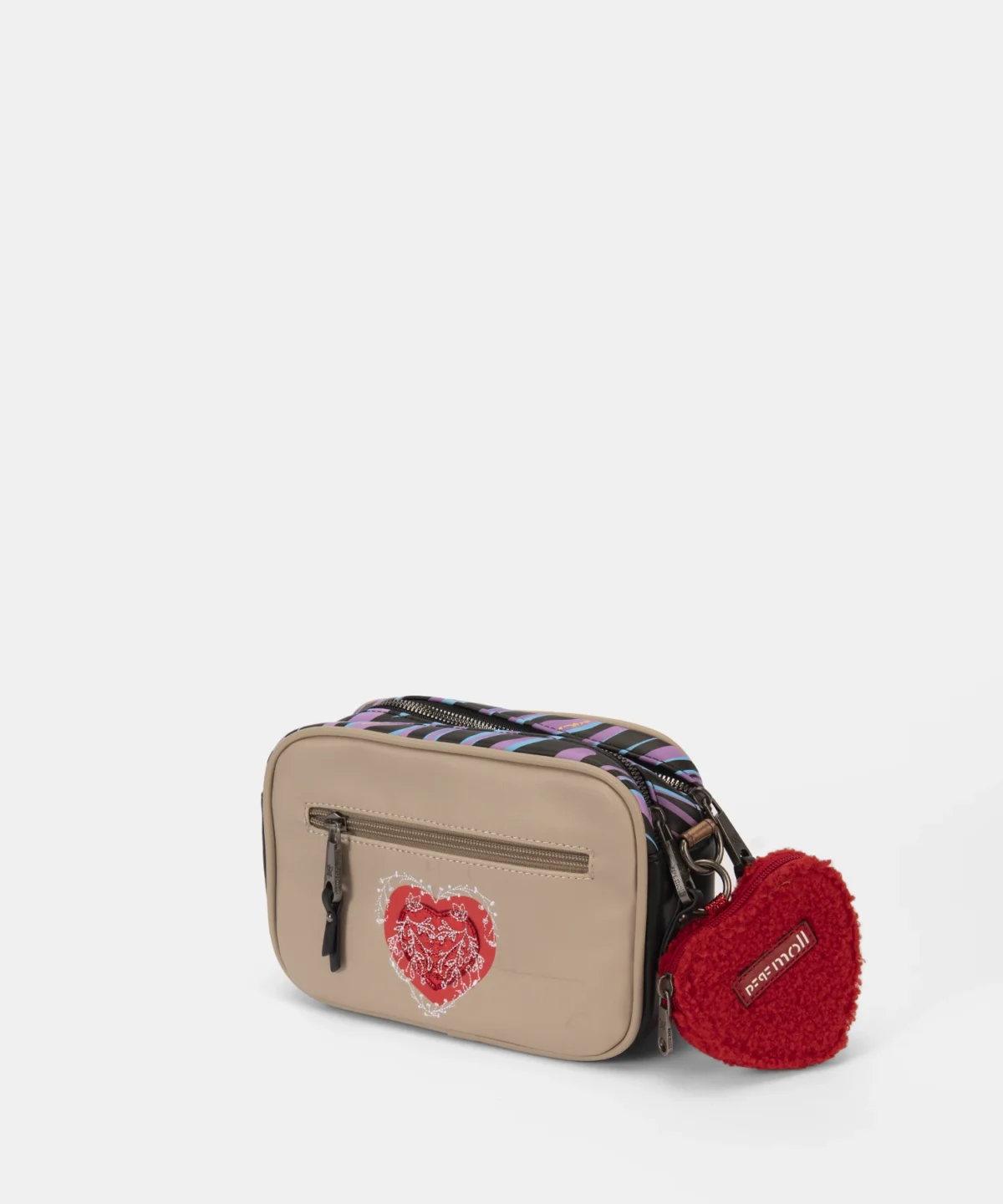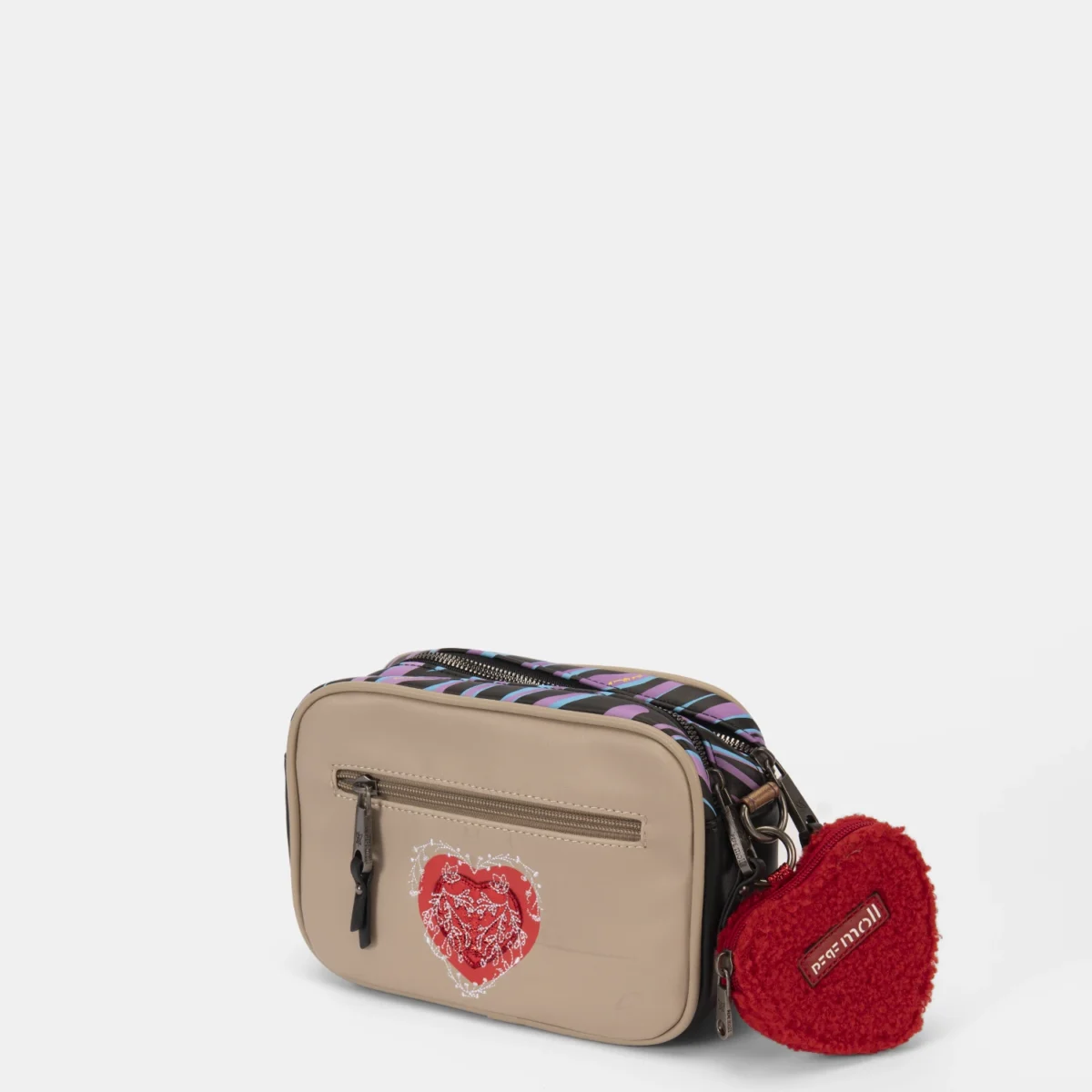 Διαθέτει διακοσμητικό μπρελόκ-καρδιά με φερμουάρ και μαλακή υφή, που προσθέτει παιχνιδιάρικο τόνο στο look. Η πλαϊνή εξωτερική τσέπη με print καρδιάς ξεχωρίζει διακριτικά, ενώ οι δύο βασικές θήκες με μεταλλικά φερμουάρ προσφέρουν πρακτική οργάνωση. Το ρυθμιζόμενο και αποσπώμενο λουράκι με το λογότυπο PEPE MOLL σου επιτρέπει να τη φοράς στον ώμο ή χιαστί, όπως σε βολεύει.