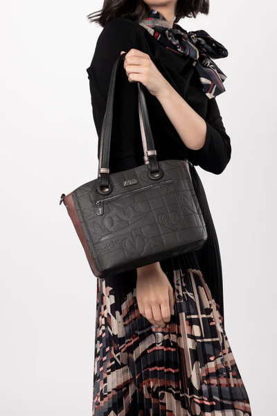 Τσάντα Ωμου μεσαία με κεντρικό χώρο που κλείνει με φερμουάρ και βοηθητικές θήκες εσωτερικά.