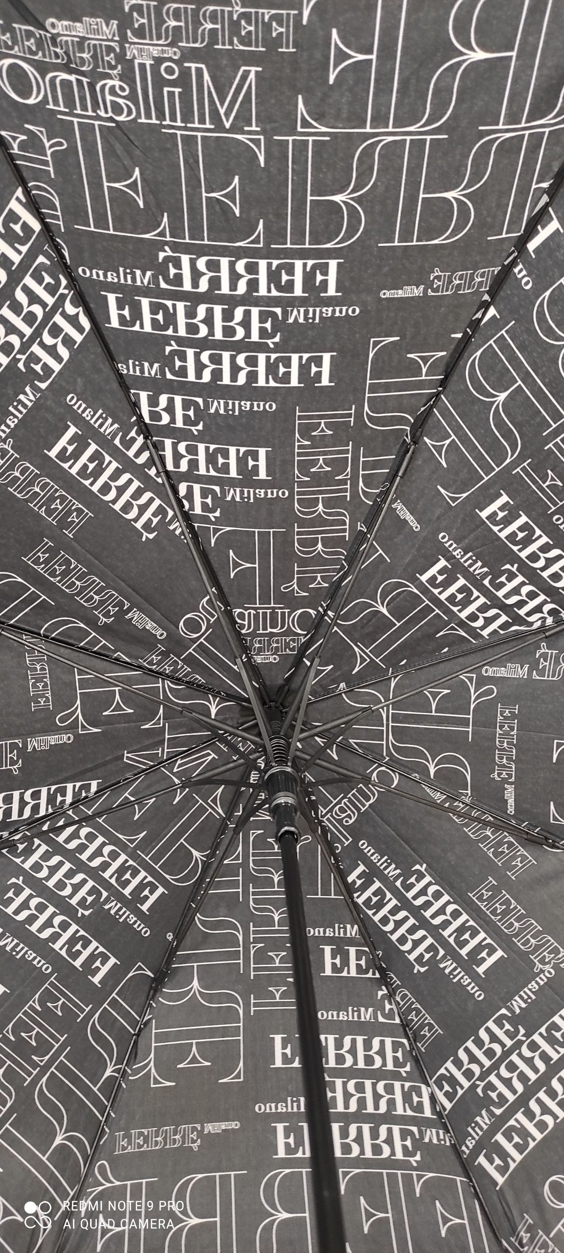 Η ομπρέλα της εταιρείας Gianfranco Ferre  είναι κατάλληλη για τις βροχερές ημέρες και ανοίγει αυτόματα πατώντας το κουμπί πάνω από τη λαβή. Η ομπρέλα μπαστούνι έχει 8 ακτίνες.