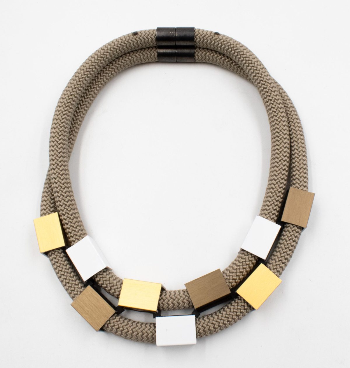 Κολιέ απο διπλό ορειβατικό κορδόνι μονόχρωμο με στοιχεία απο αλουμίνιο.